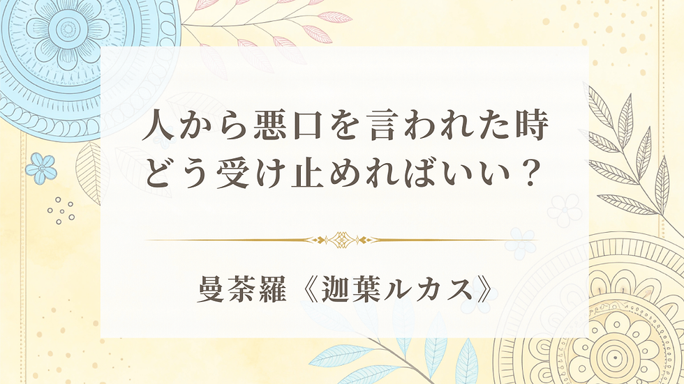 人から悪口を言われた時、どう受け止めればいい?《迦葉ルカス》